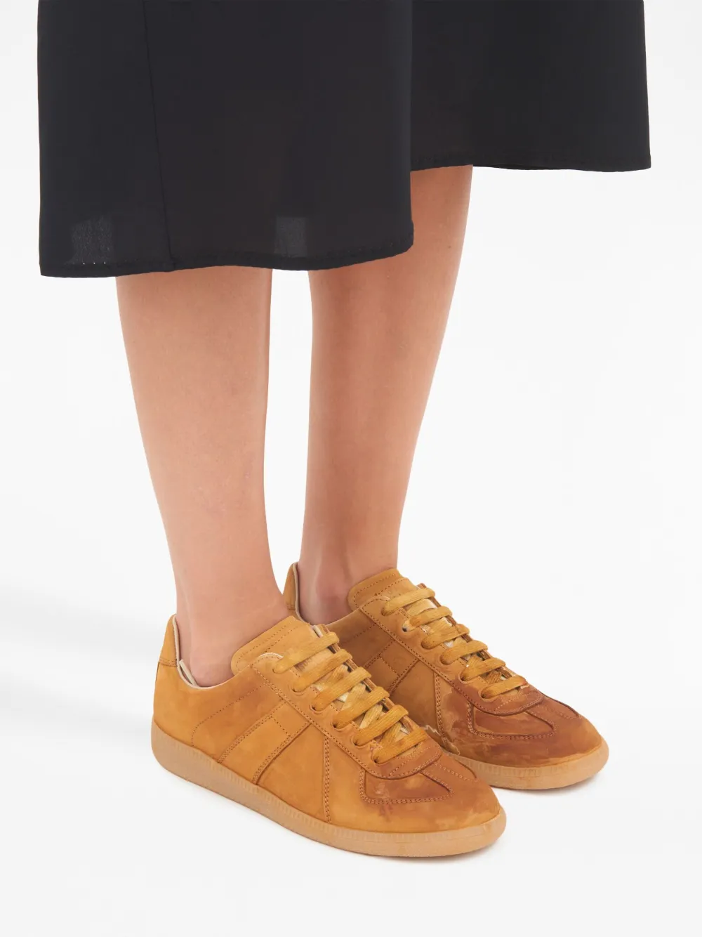 Marron camel, cuir, languette à patch logo, bout en amande, fermeture à lacer sur le devant, semelle intérieure à logo, semelle plate en caoutchouc.