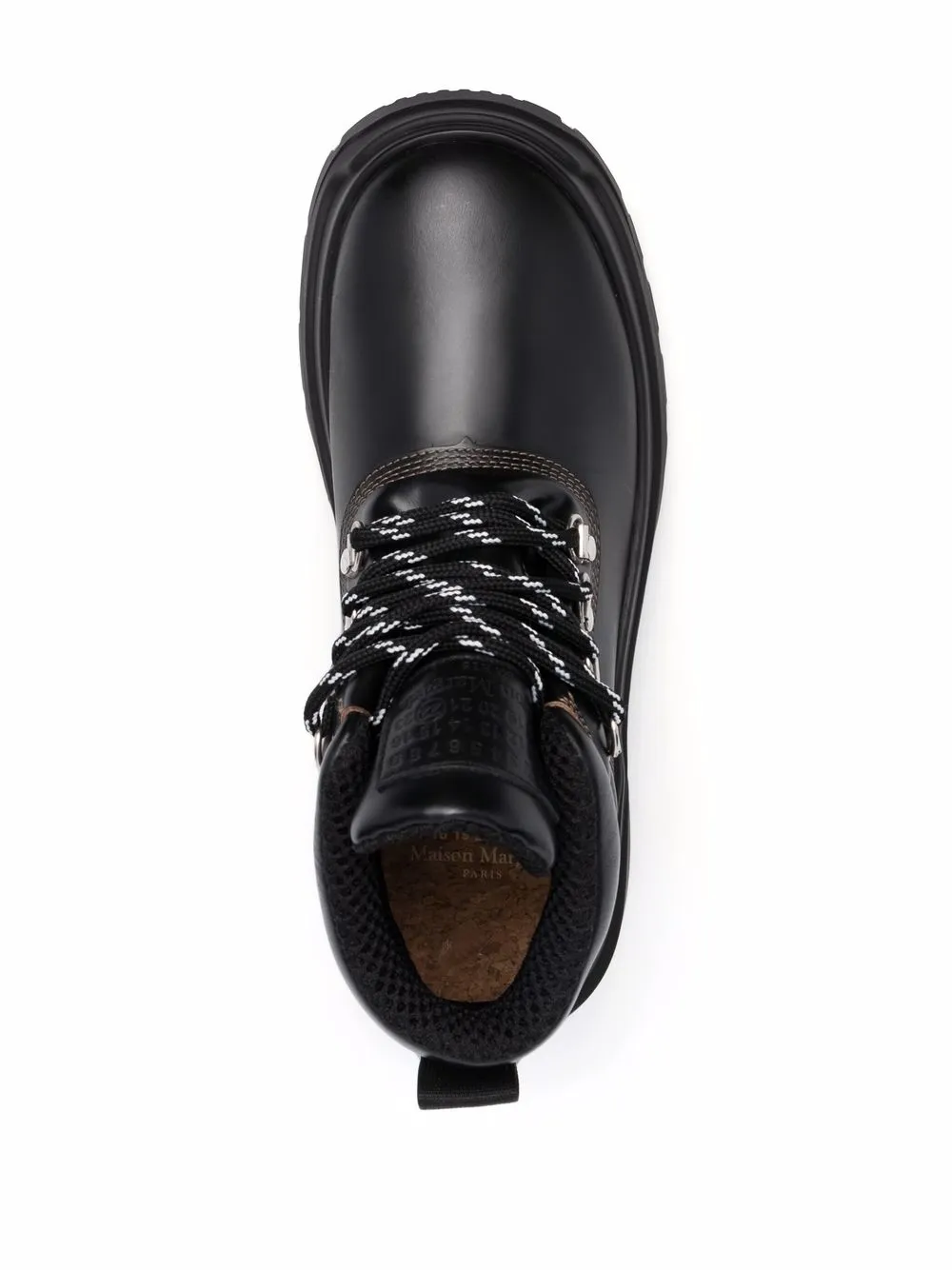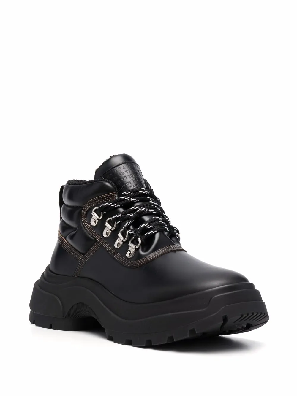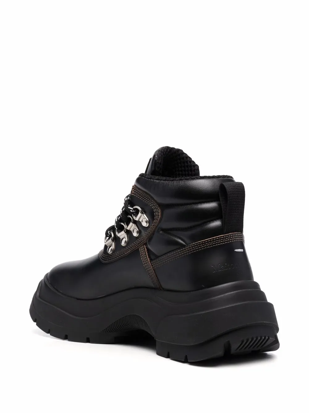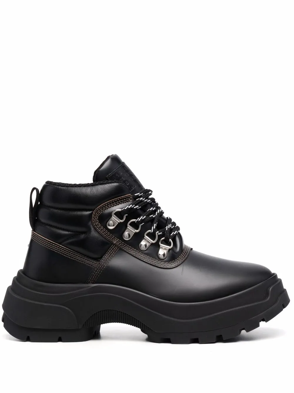 Bout rond, fermeture à lacer sur le devant, languette à patch logo, semelle intérieure à logo, semelle épaisse en caoutchouc. Couleur : noir. Matière : cuir.