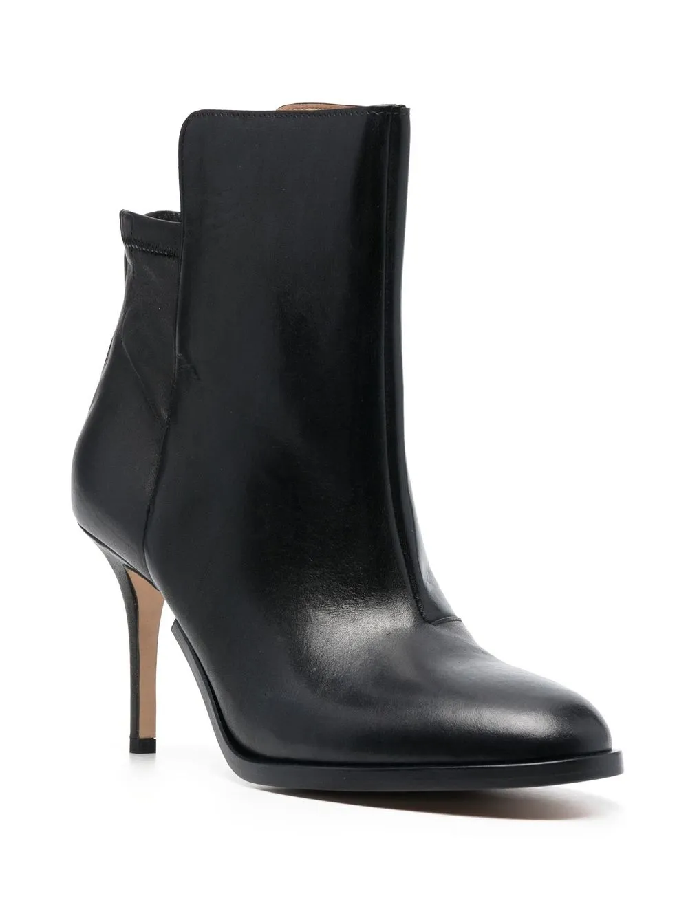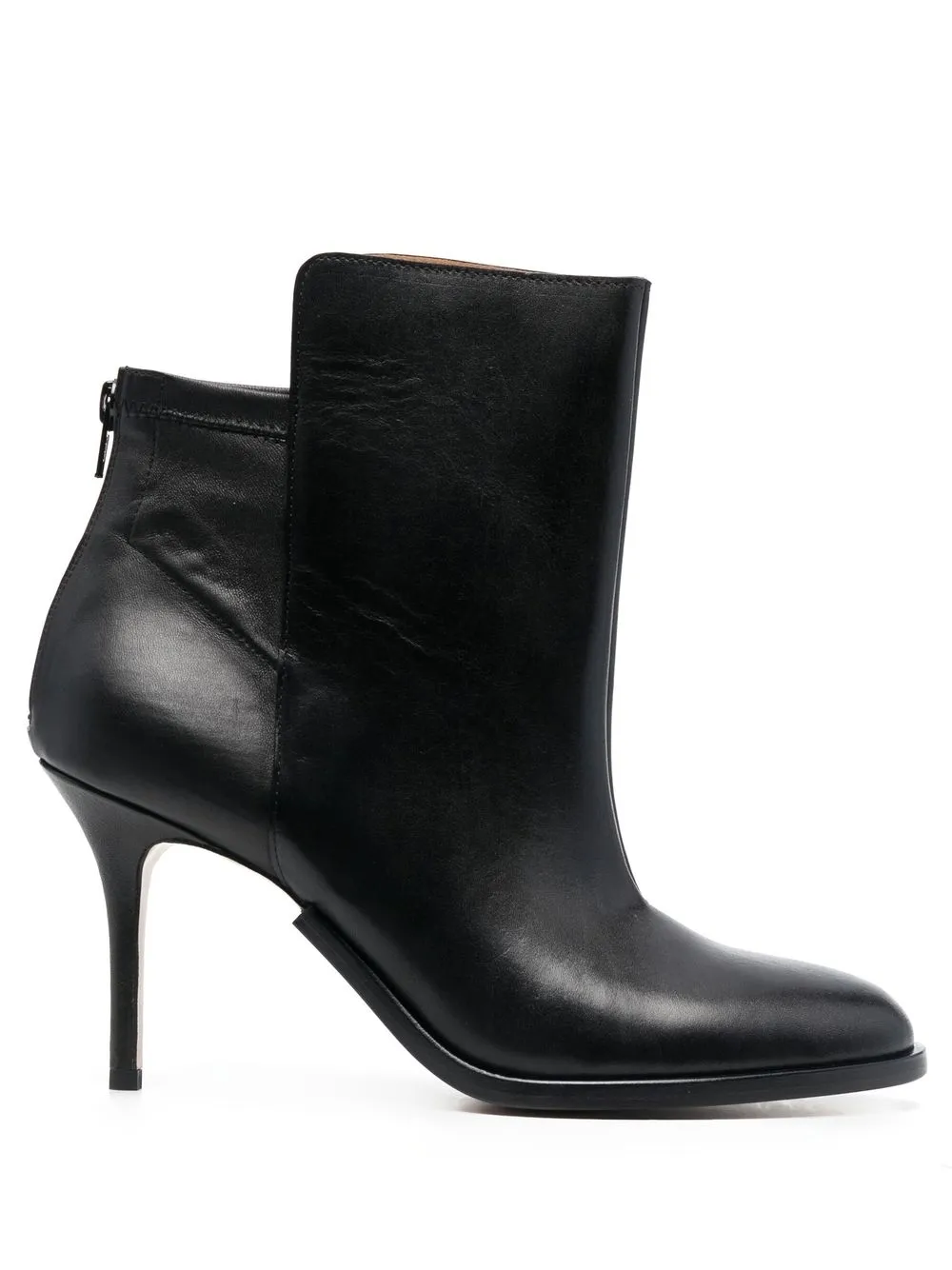 Bottines à empiècements en cuir noir Maison Martin Margiela avec bout rond, fermeture zippée arrière et talon aiguille.