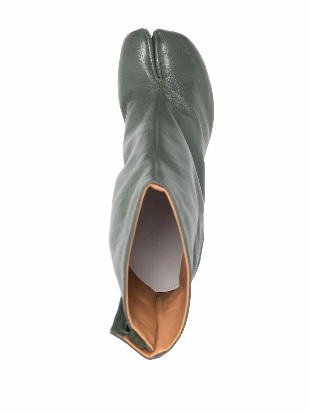 Bout Tabi signature, design à enfiler, hauteur cheville, contrefort à logo, talon mi-haut épais. Matière : cuir.