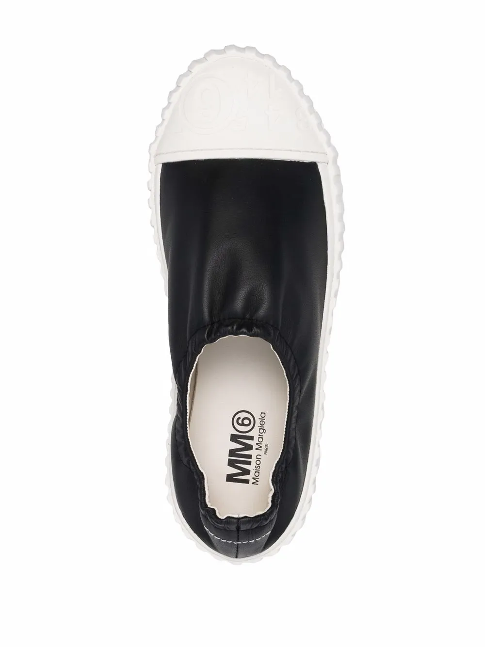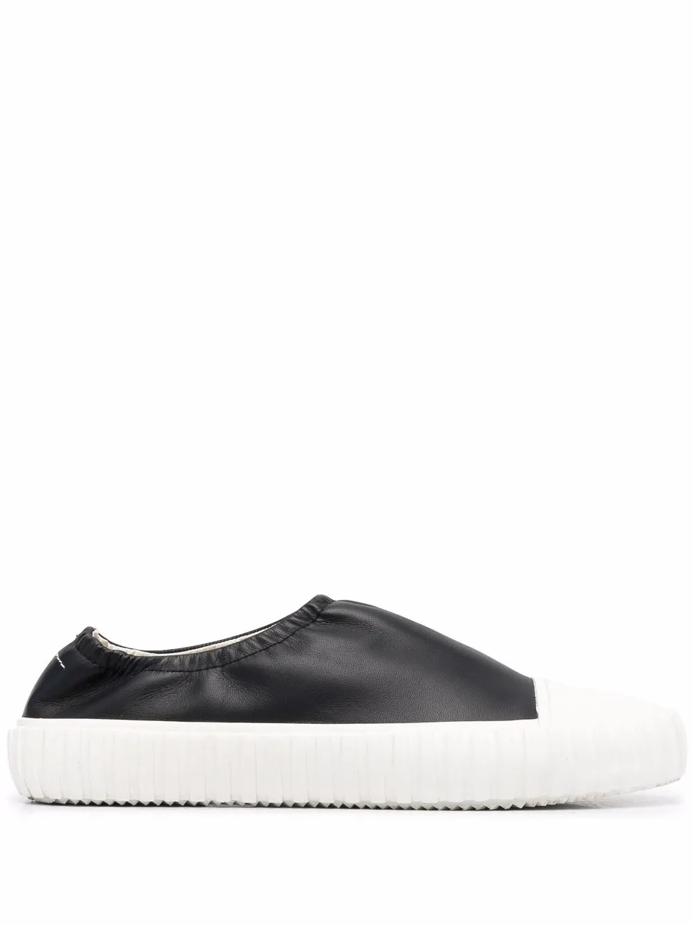 Bout rond, design à enfiler, semelle intérieure à logo, semelle plate en caoutchouc. Matière : cuir.