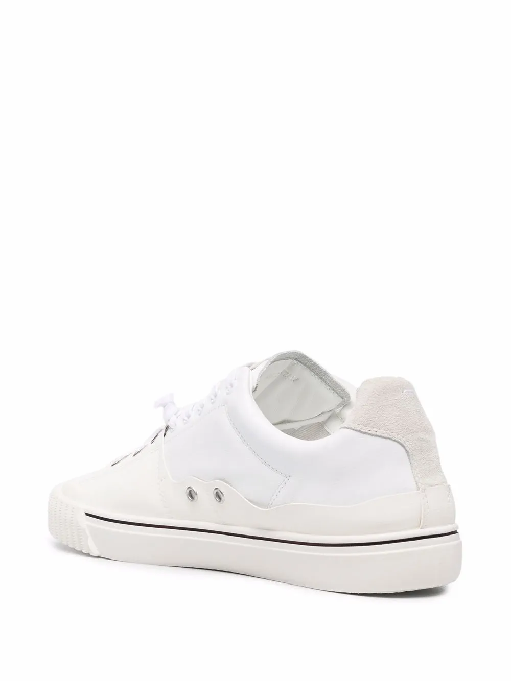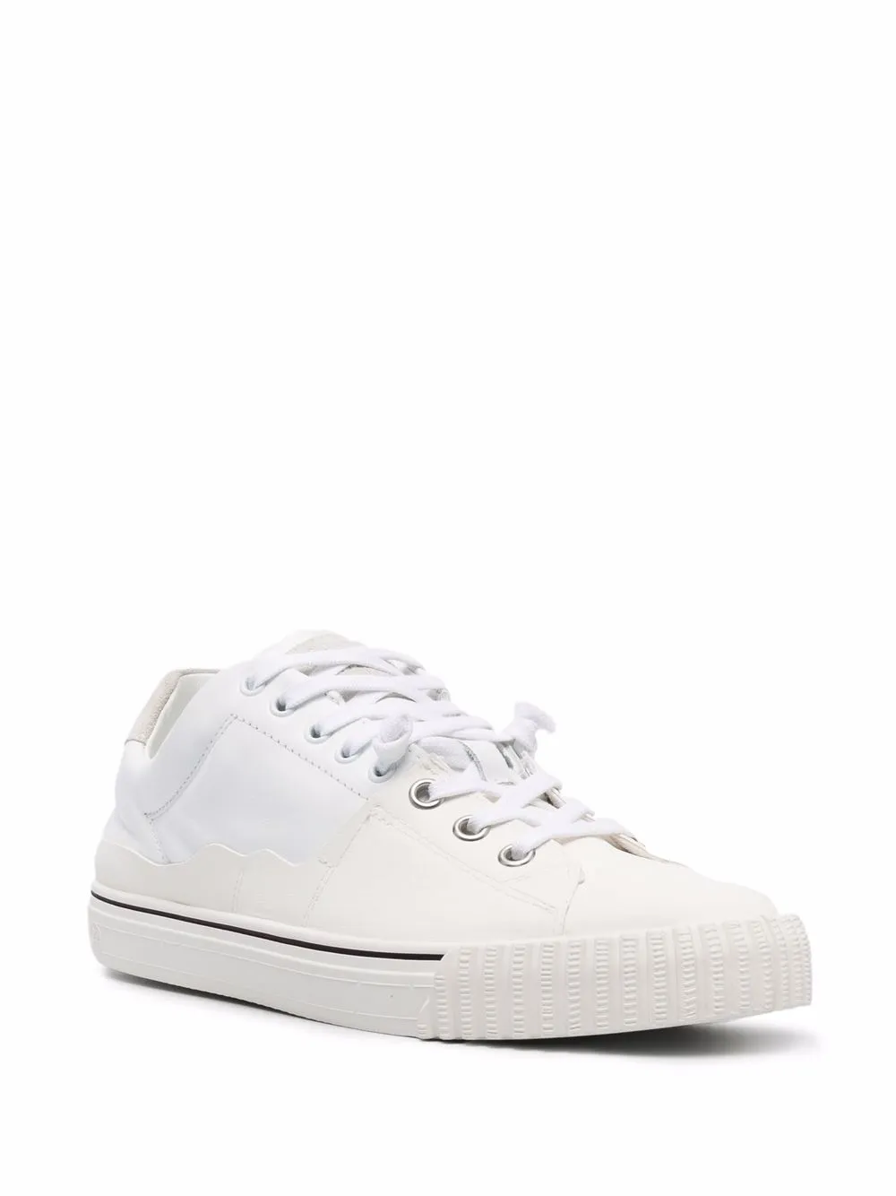 Fermeture à lacer sur le devant, bout rond, contrefort texturé, semelle plate en caoutchouc. Couleur : blanc. Matière : cuir.
