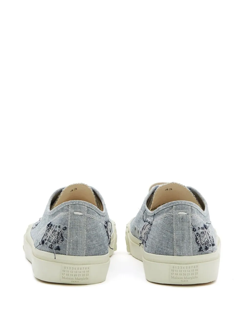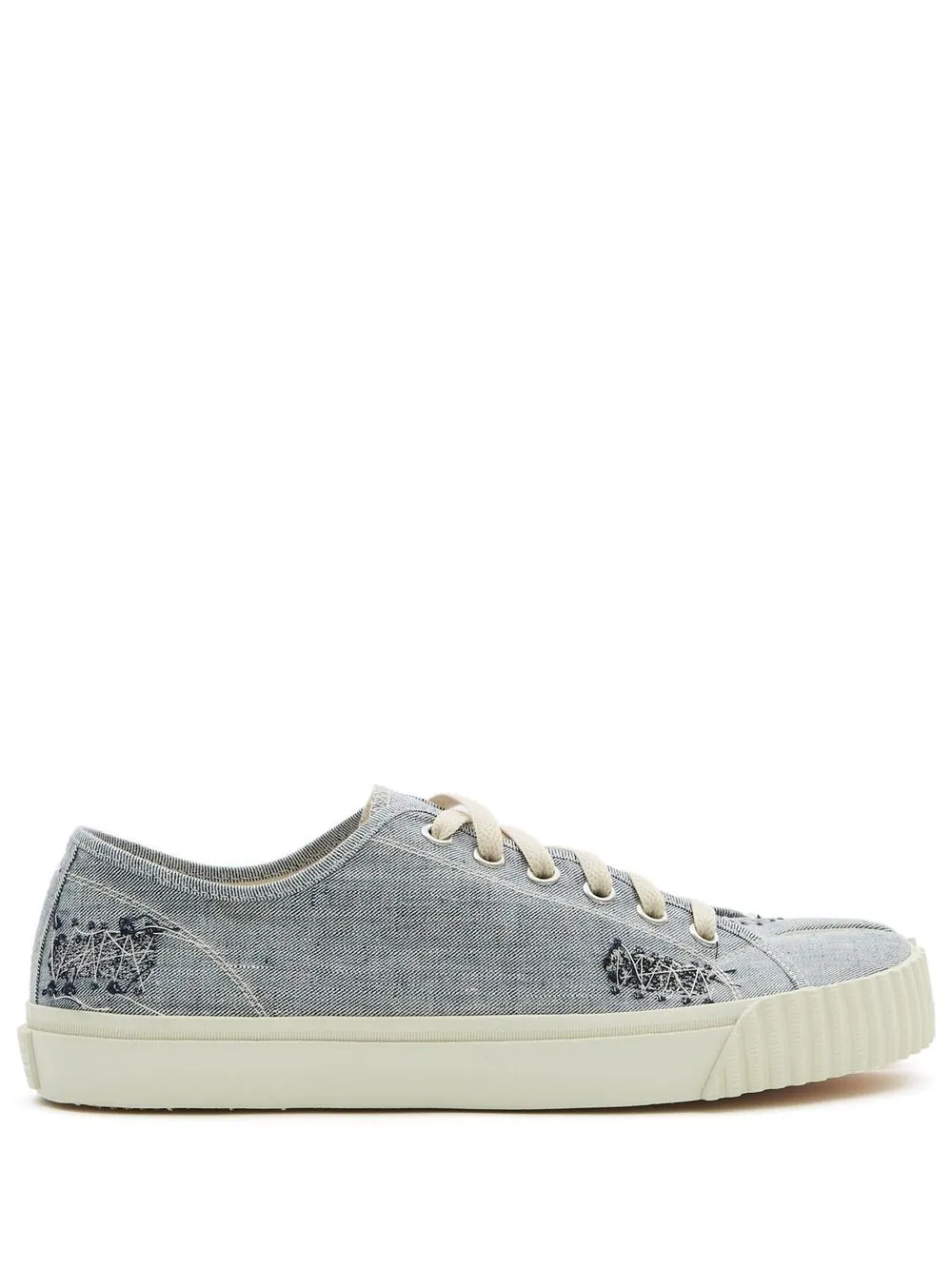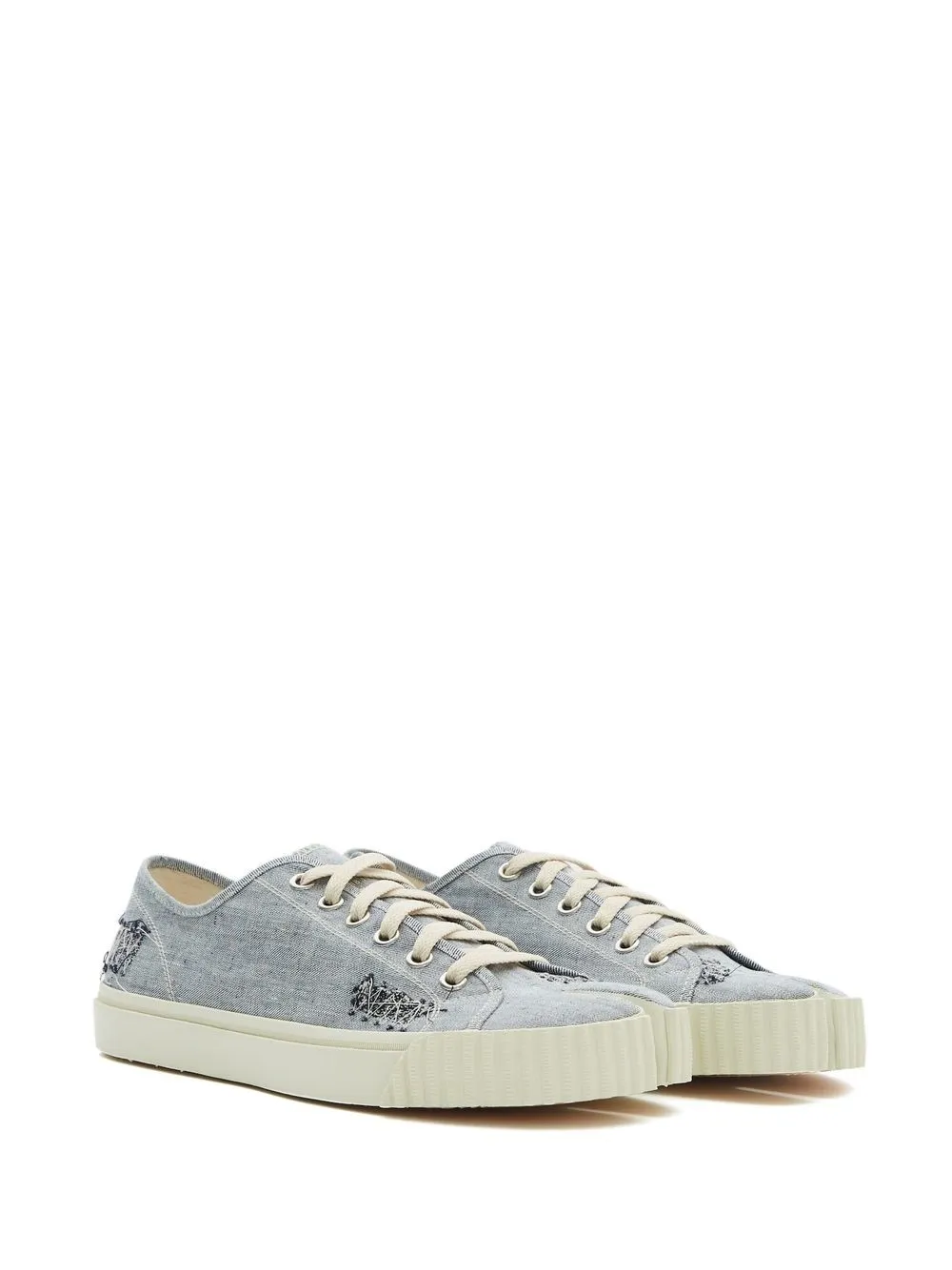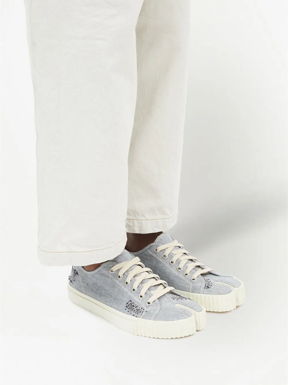 Bleu/blanc, noir, chanvre, coton, effet usé, coutures contrastantes, bout Tabi signature, fermeture à lacer sur le devant, semelle en caoutchouc. CHOIX CONSCIENT : cet article se compose d’au moins 50 % de matériaux à faible impact, qui sont certifiés ou largement reconnus comme ayant un impact environnemental moindre..