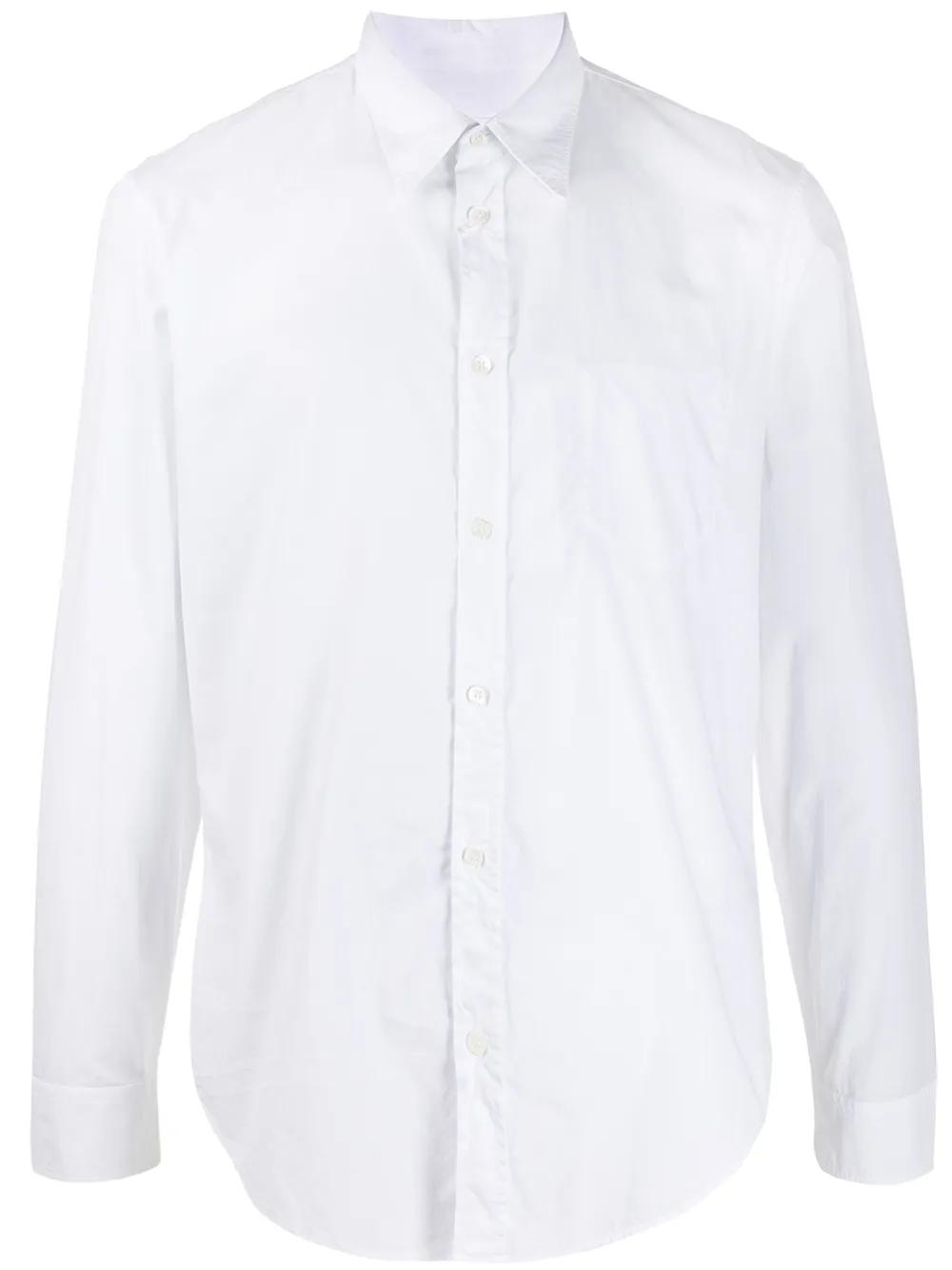 Chemise classique en coton en coton Maison Margiela avec col classique, ourlet incurvé et longueur classique. Couleur : blanc.