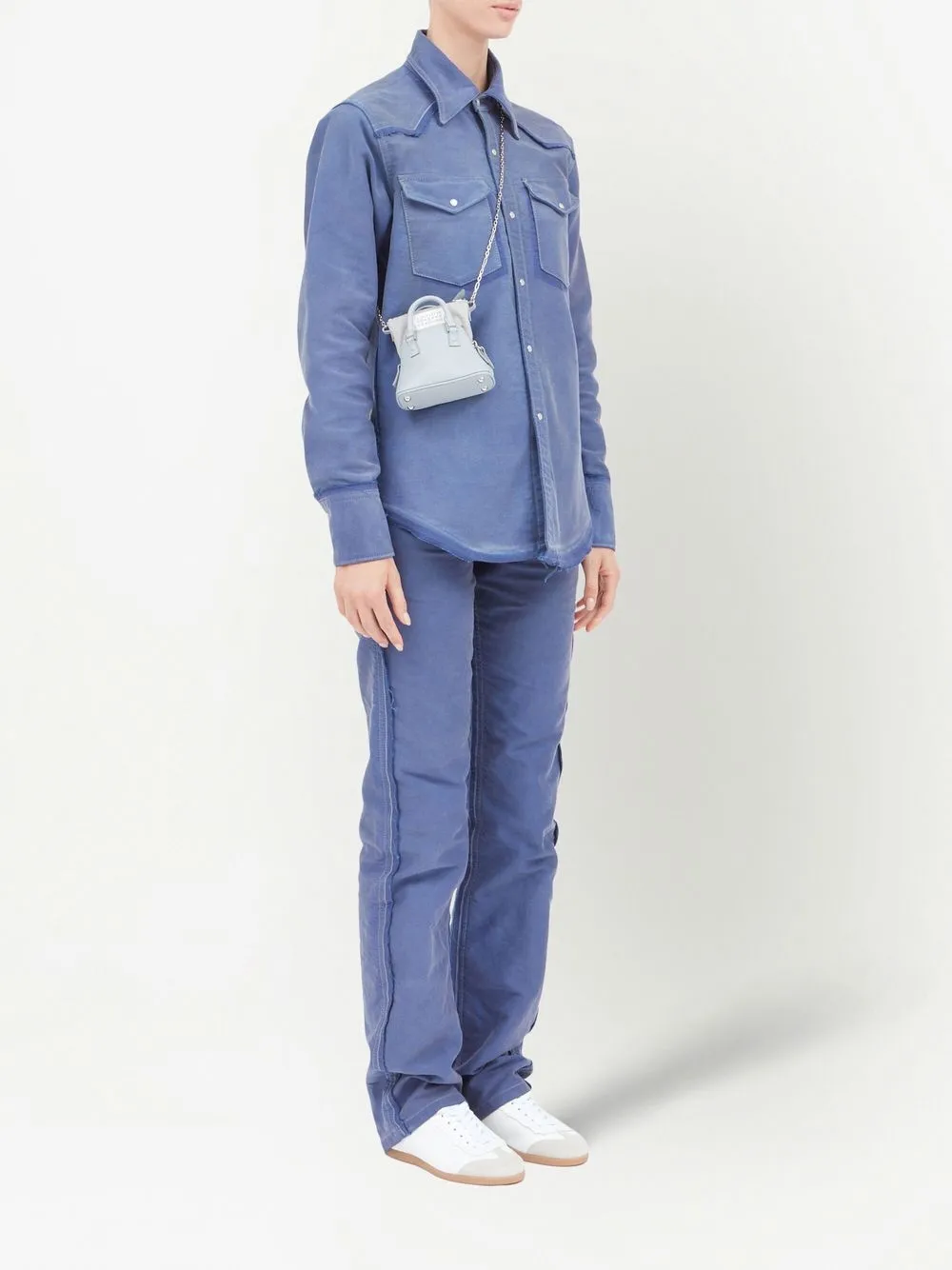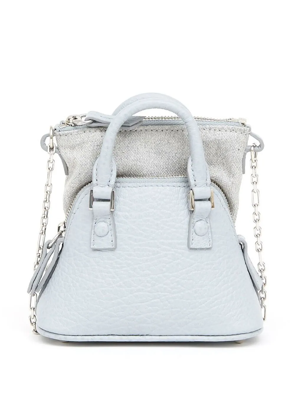 Cuir de veau, coton, logo numéroté signature, bride porté épaule en chaîne, anses sur le dessus, fermeture zippée sur le dessus, compartiment principal.