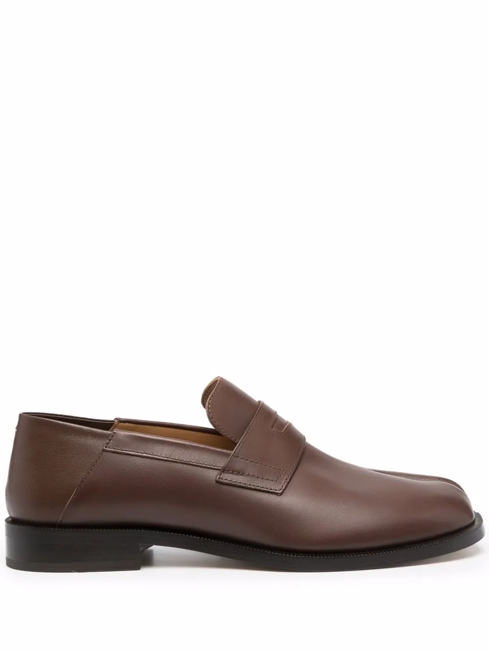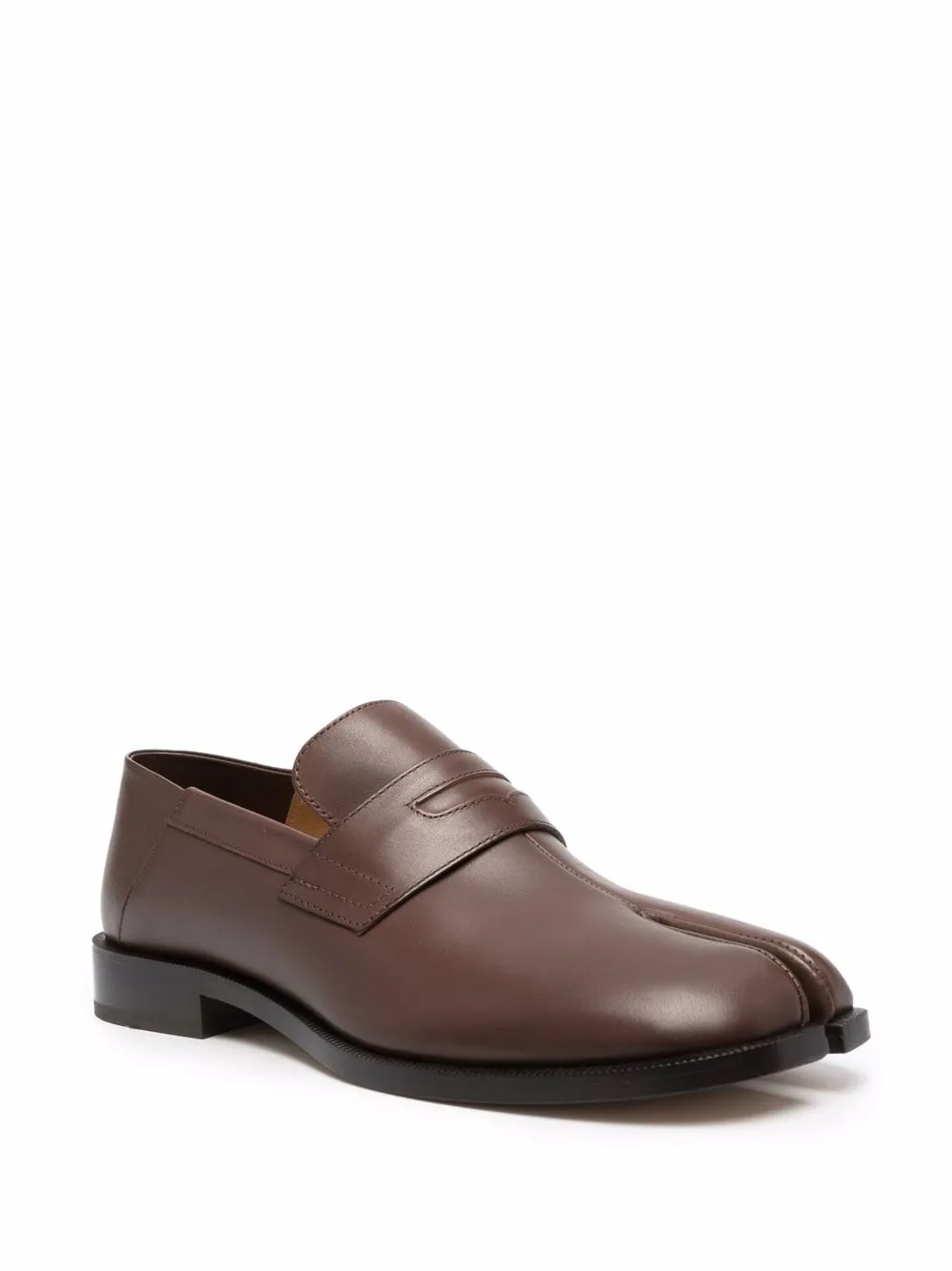 Bout Tabi signature, design ton sur ton, fini poli, design à enfiler. Couleur : marron. Matière : cuir.