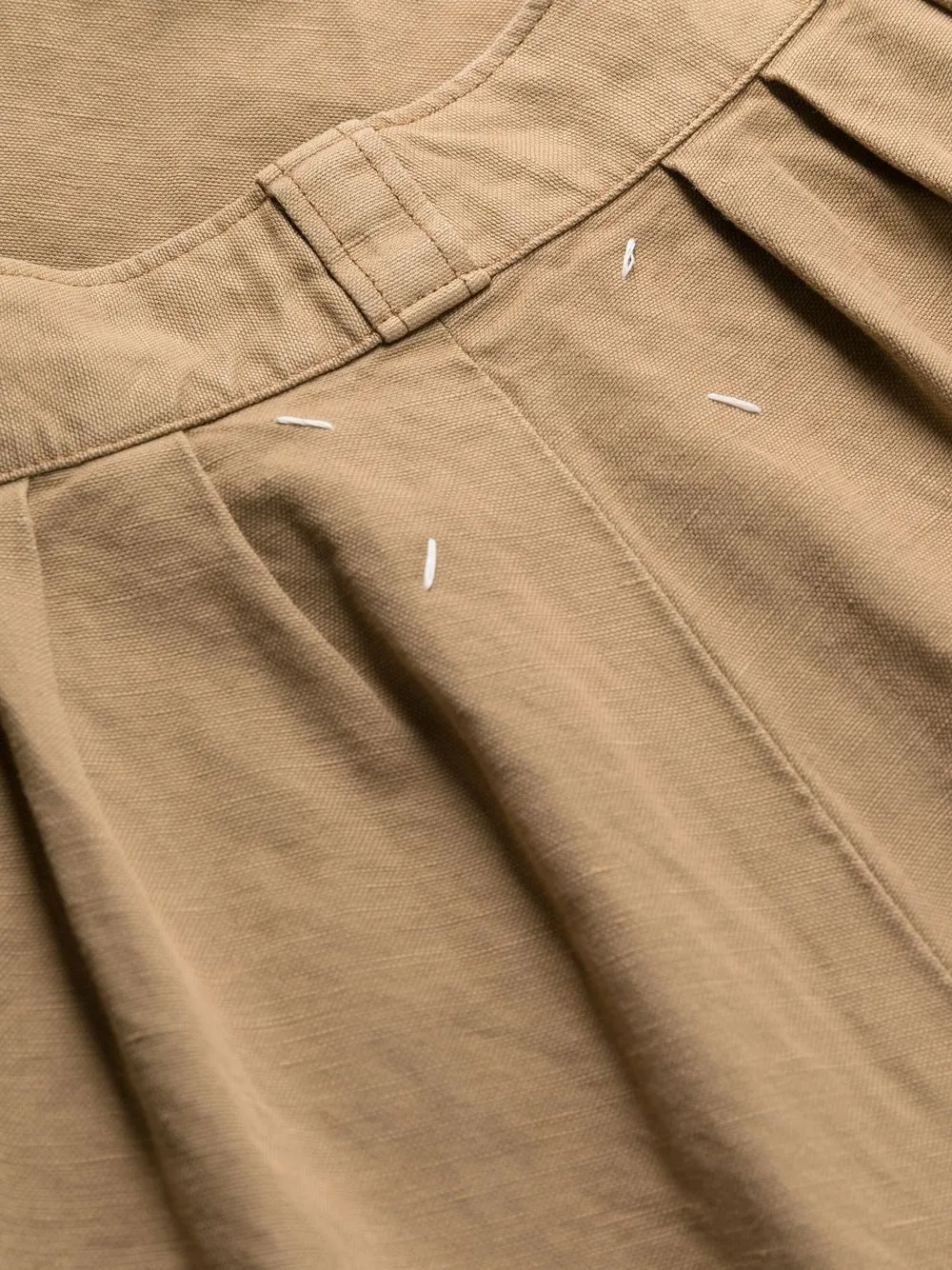 Beige, coton, fermeture à zip et boutons sur le devant, passants de ceinture, coupe ample, détails de fronces.