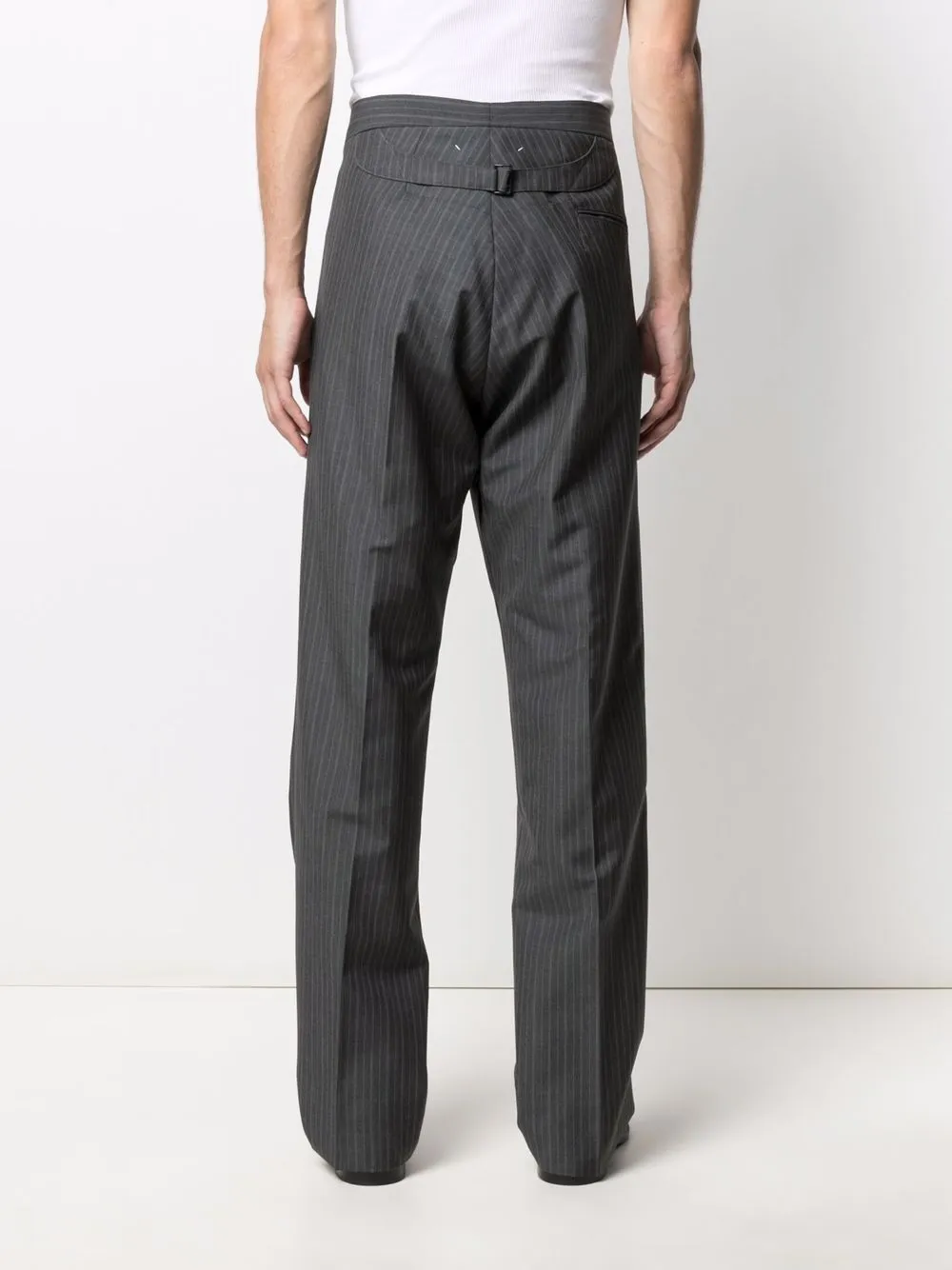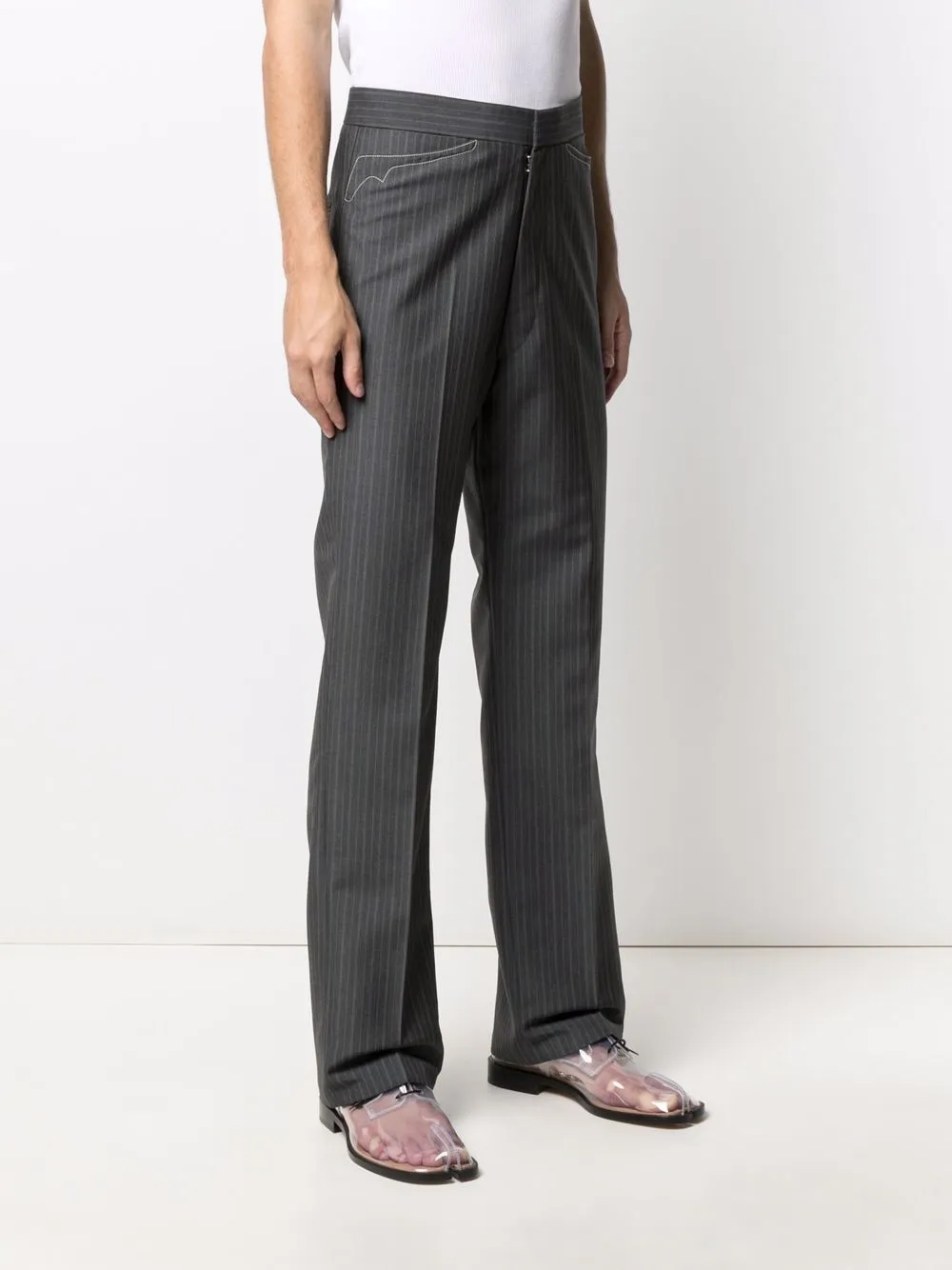 Fines rayures, coutures contrastantes, logo brodé signature, fermeture à zip et agrafes, poches latérales fendues, bretelle ajustable au dos, poche passepoilée à l’arrière, coupe ample, coupe longue.