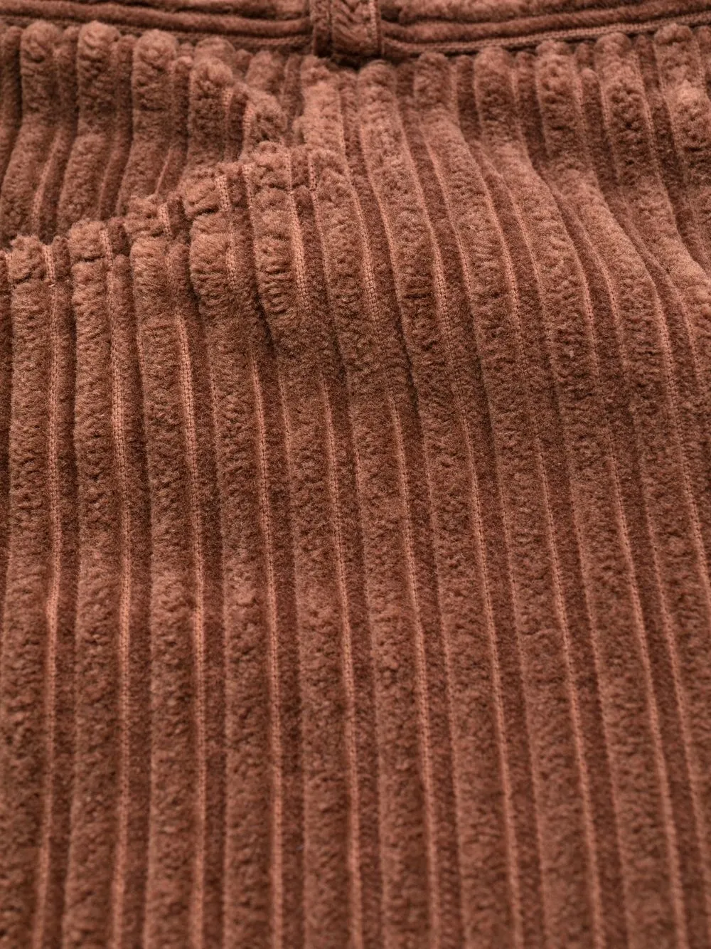 Auburn, velours côtelé, logo brodé signature, boutonnière sur le devant, passants de ceinture, poches latérales fendues.