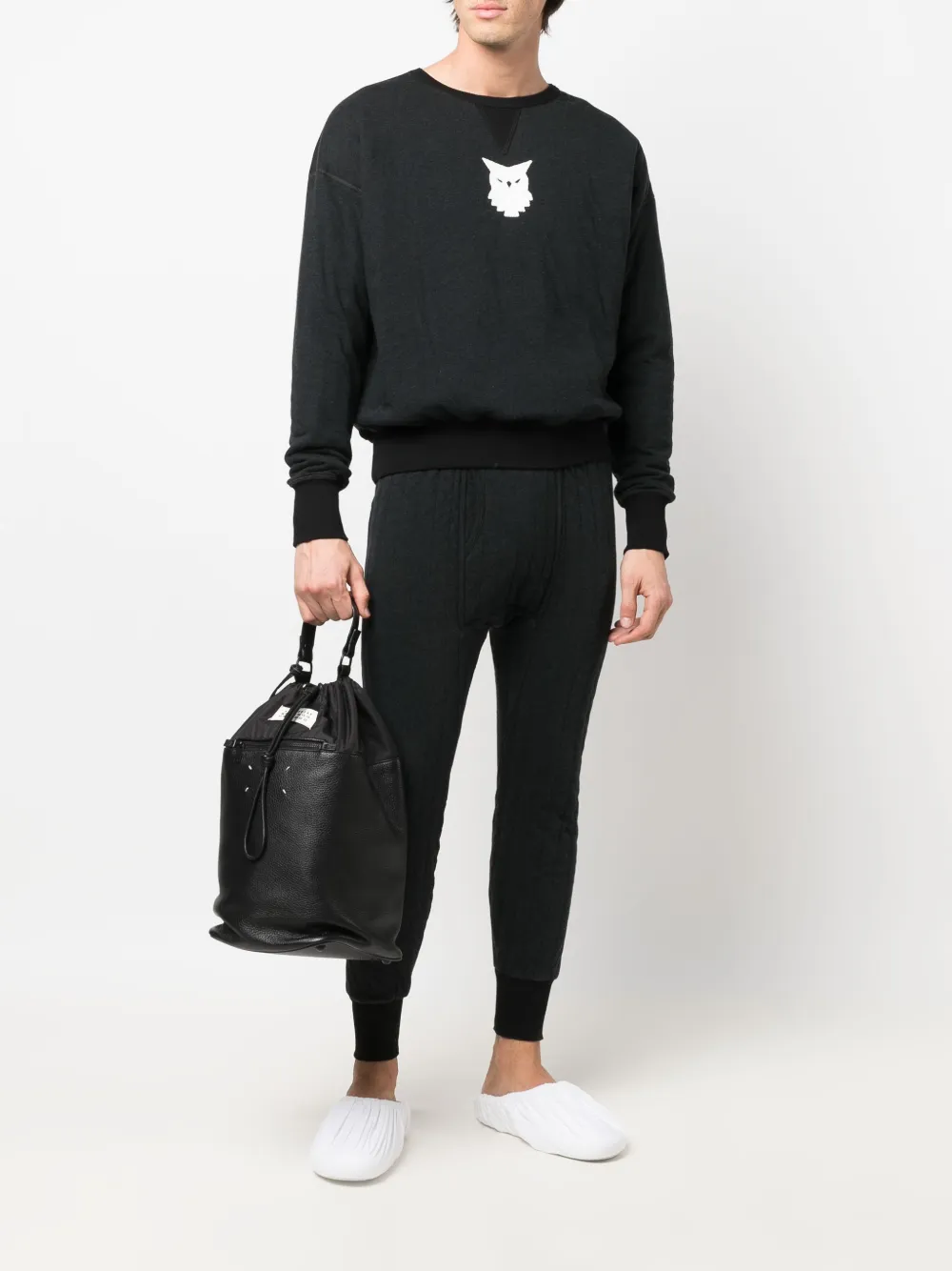 Logo brodé signature, détail de patch, design à empiècements, ceinture élastique, coutures ton sur ton, coupe slim, poignets élastiqués. Matière : coton.