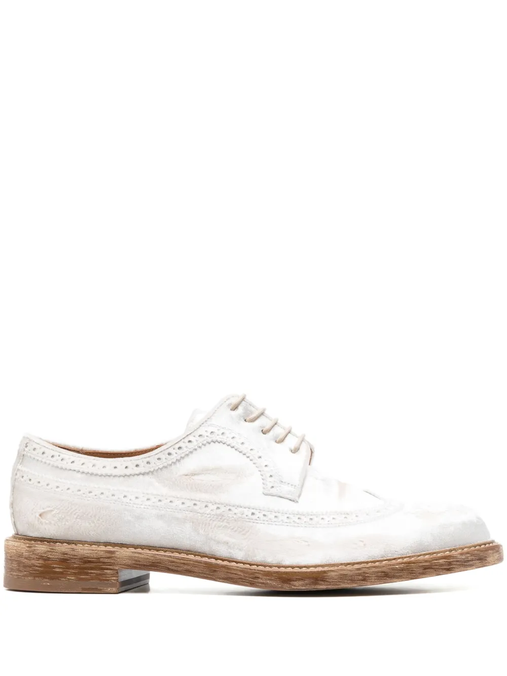 Blanc Static, cuir de veau, effet usé, fermeture à lacer sur le devant, bout rond, semelle plate, semelle intérieure à logo.