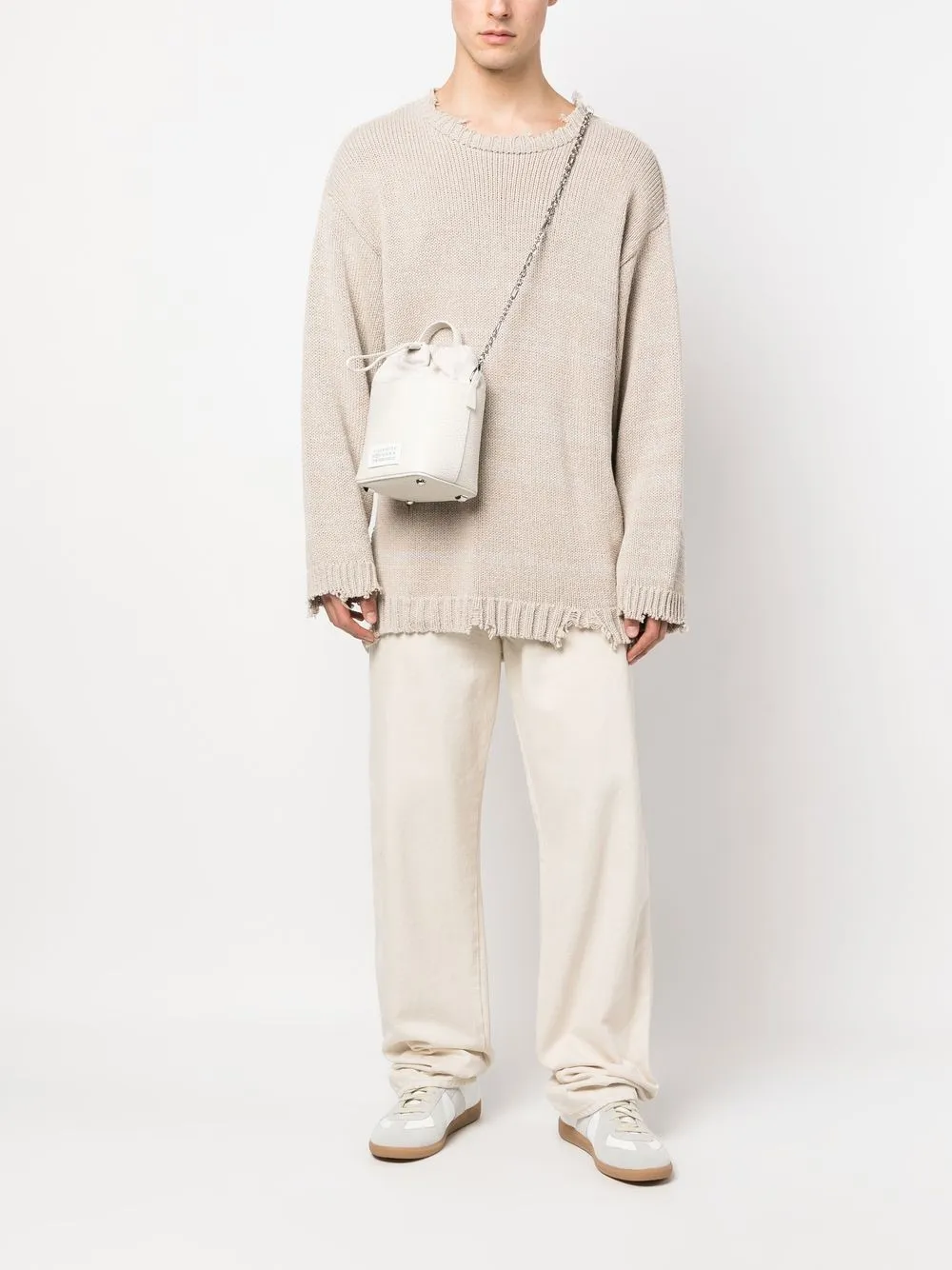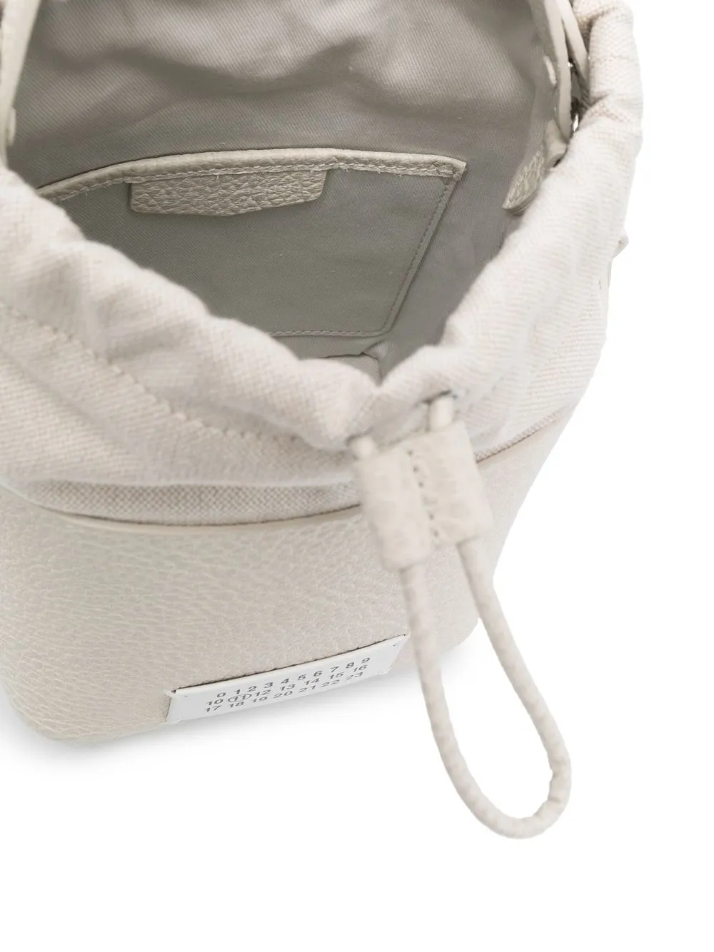 Sac à main à patch logo Maison Margiela avec gris clair, coton/cuir, logo numéroté signature, bride porté épaule en chaîne, lien de resserrage et compartiment principal.