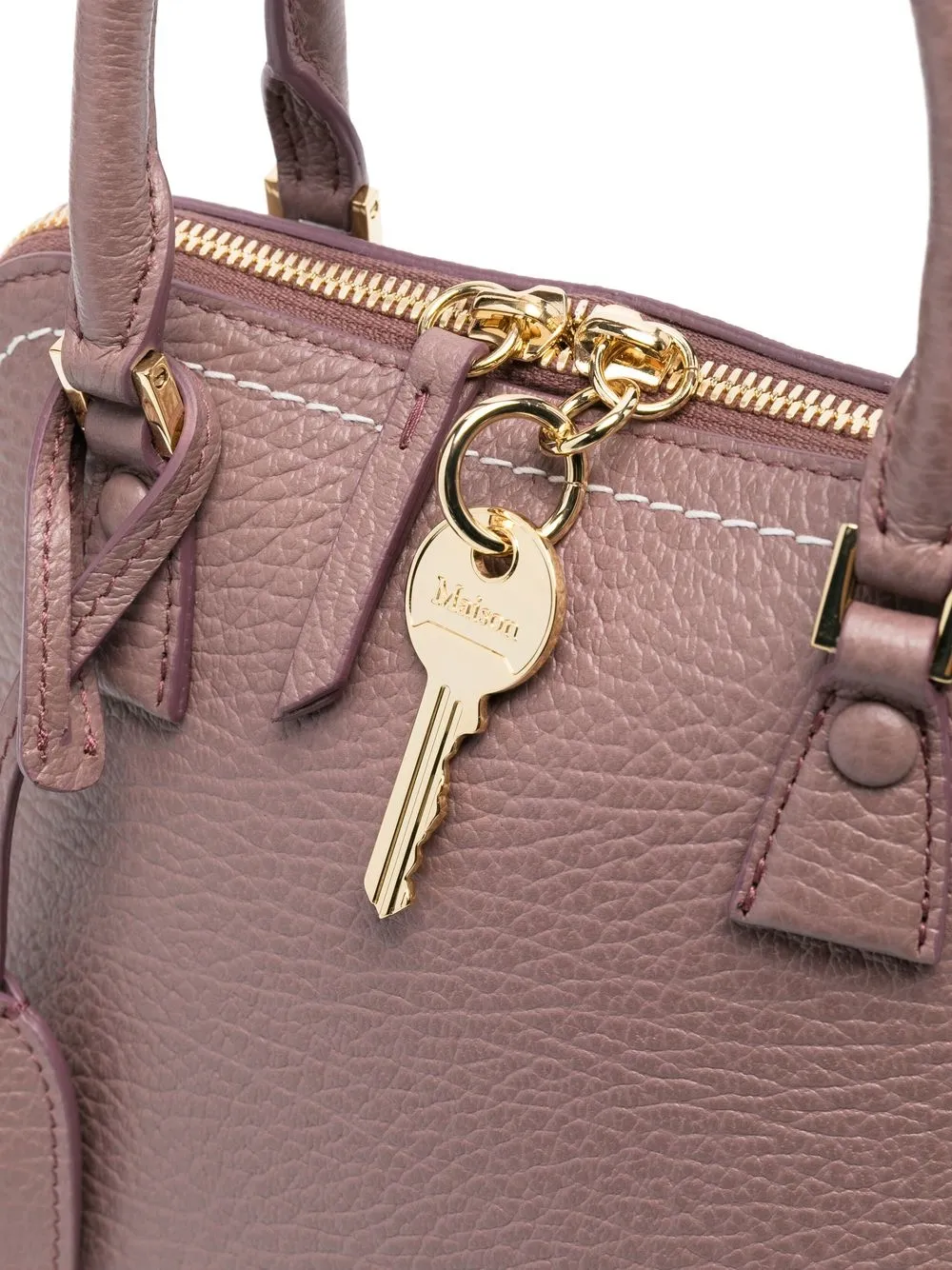 Violet, logo brodé signature, logo numéroté signature, pendentif clé, finitions en métal doré, étiquette en cuir, fermeture zippée sur le dessus, bride porté épaule détachable et ajustable, anses sur le dessus, compartiment principal, patch logo intérieur, pieds en métal.
