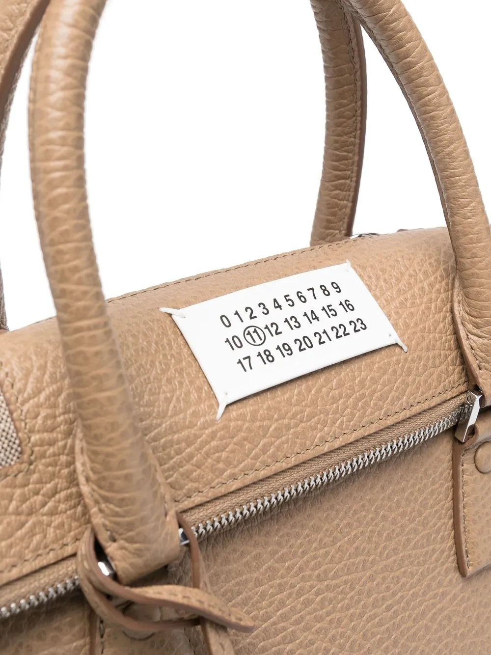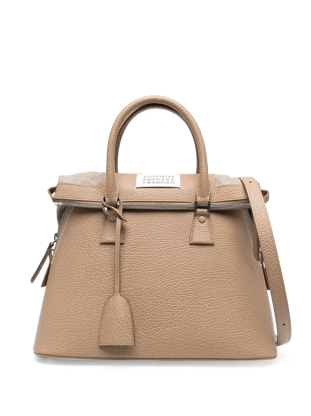 Étiquette en cuir, deux anses arrondies, fermeture zippée tout autour, bride porté épaule ajustable.