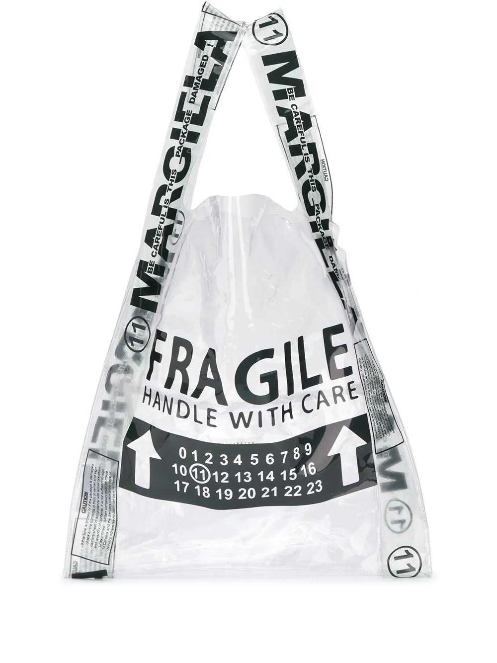 Sac cabas Fragile Maison Margiela avec effet de transparence, anses sur le dessus et design ouvert sur le dessus.