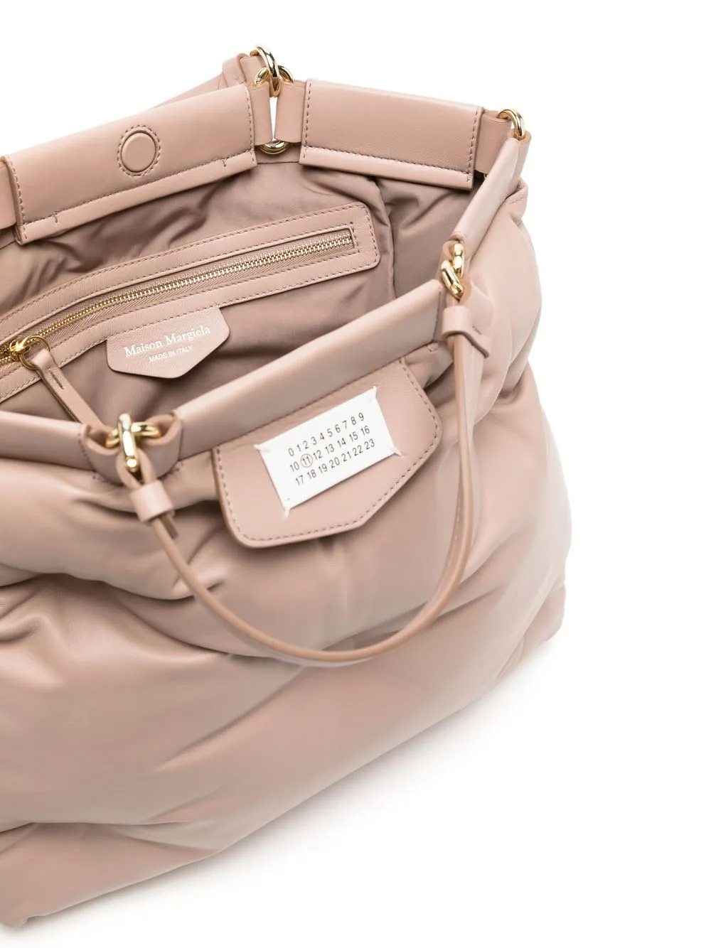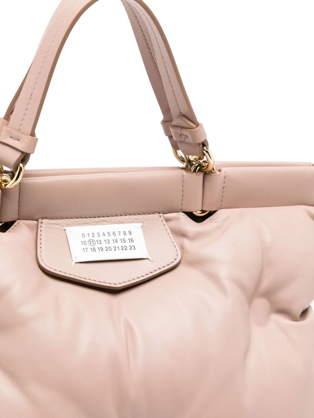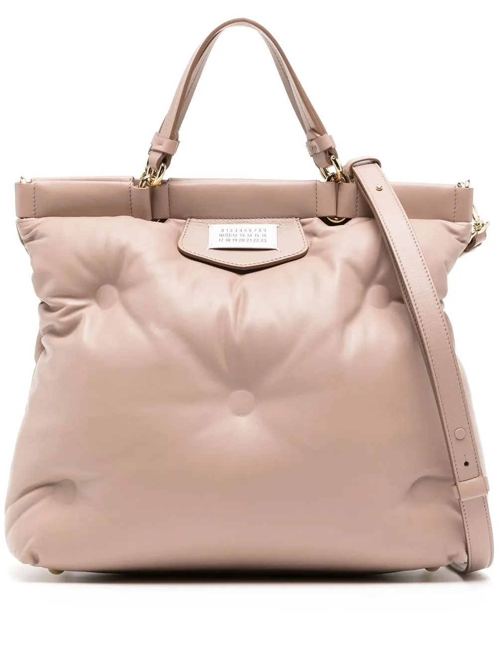 Rose, cuir de veau, design matelassé, finitions en métal doré, logo numéroté signature, fermeture magnétique, anses sur le dessus, bride porté épaule détachable, compartiment principal, poches intérieures zippées.