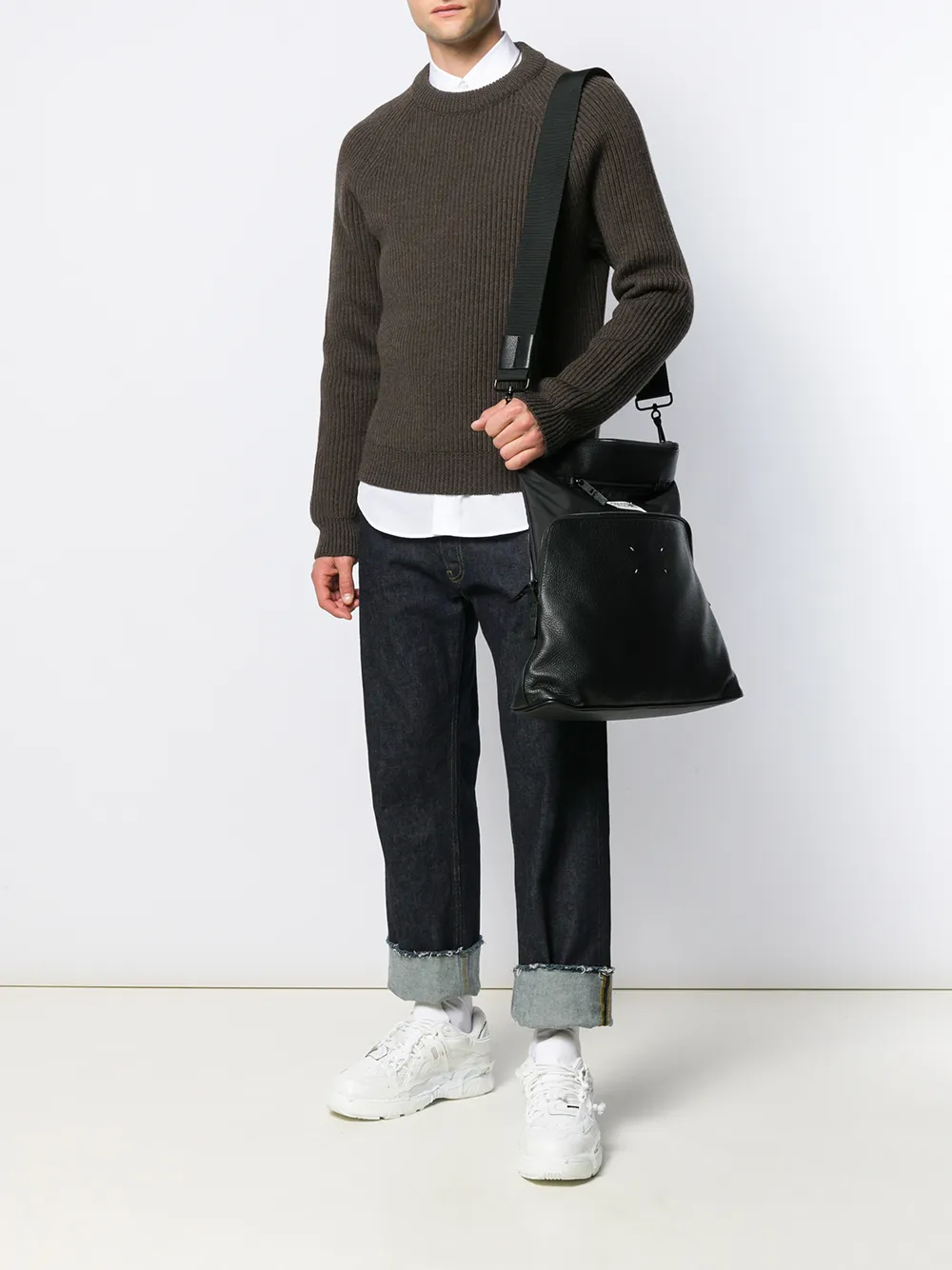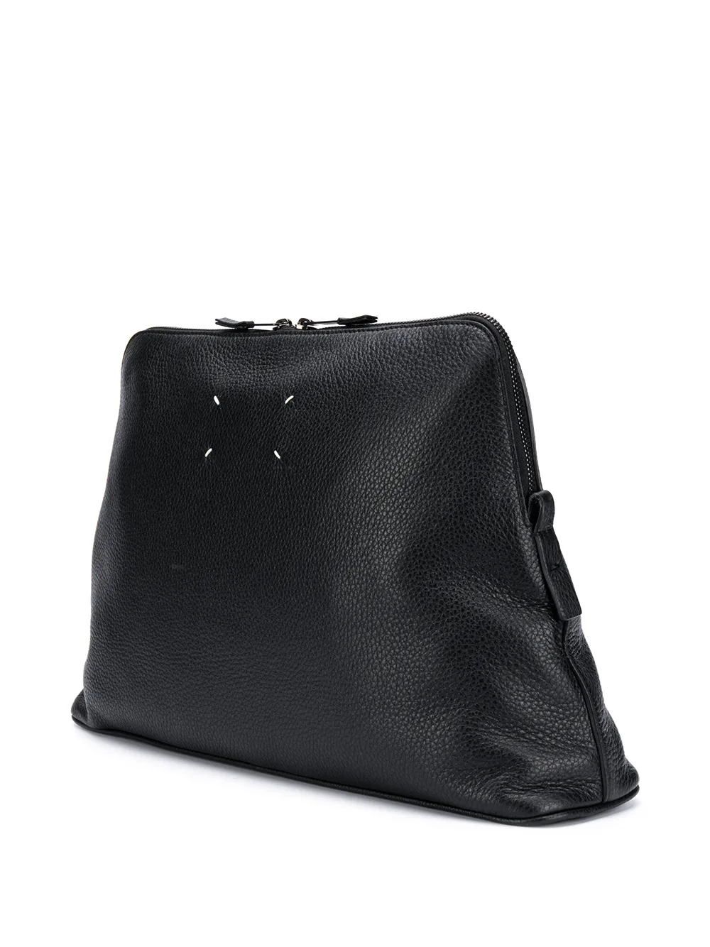 Sac porté épaule à logo en cuir de cerf Maison Margiela avec bride portée épaule détachable et ajustable, fermeture zippée, patch logo intérieur et poche intérieure zippée. Couleur : noir.
