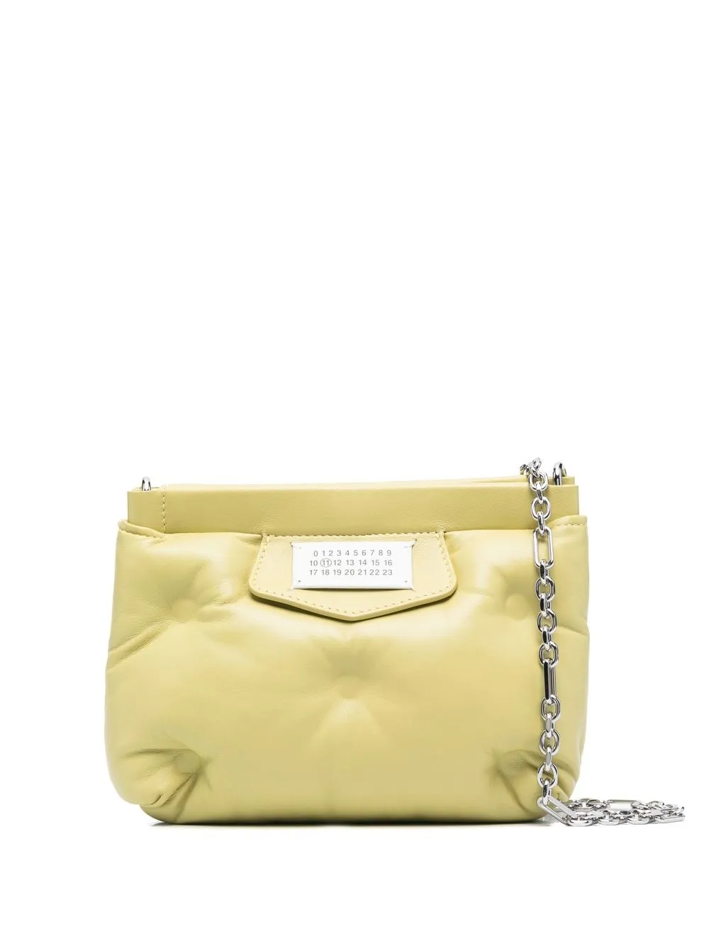 Vert fluorescent, design matelassé, logo numéroté signature, patch logo sur le devant, bride porté épaule en chaîne, compartiment principal.