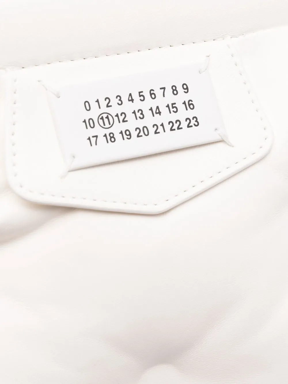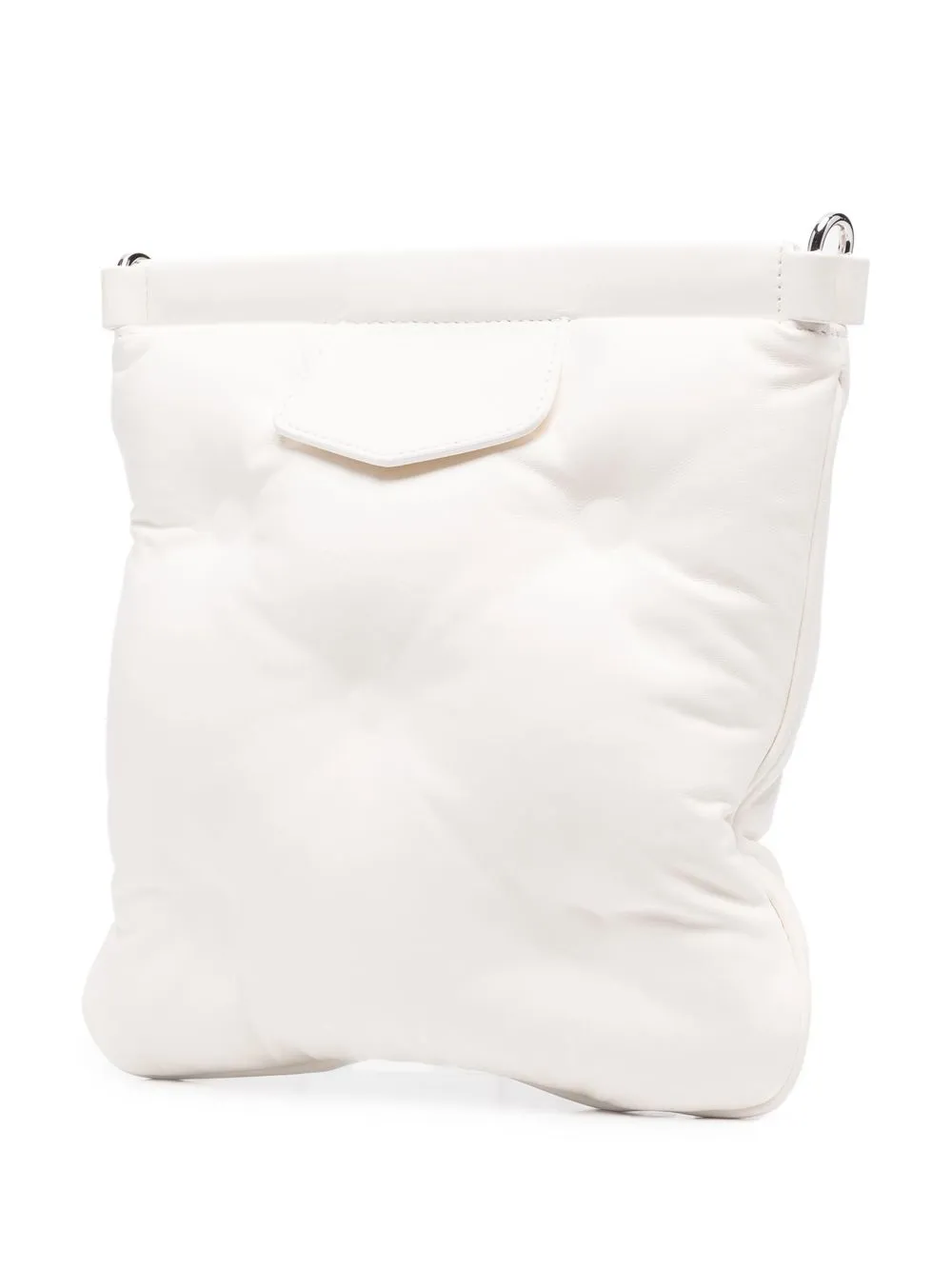 Blanc, cuir, patch logo sur le devant, fermeture zippée sur le dessus, bride porté épaule ajustable, compartiment principal.