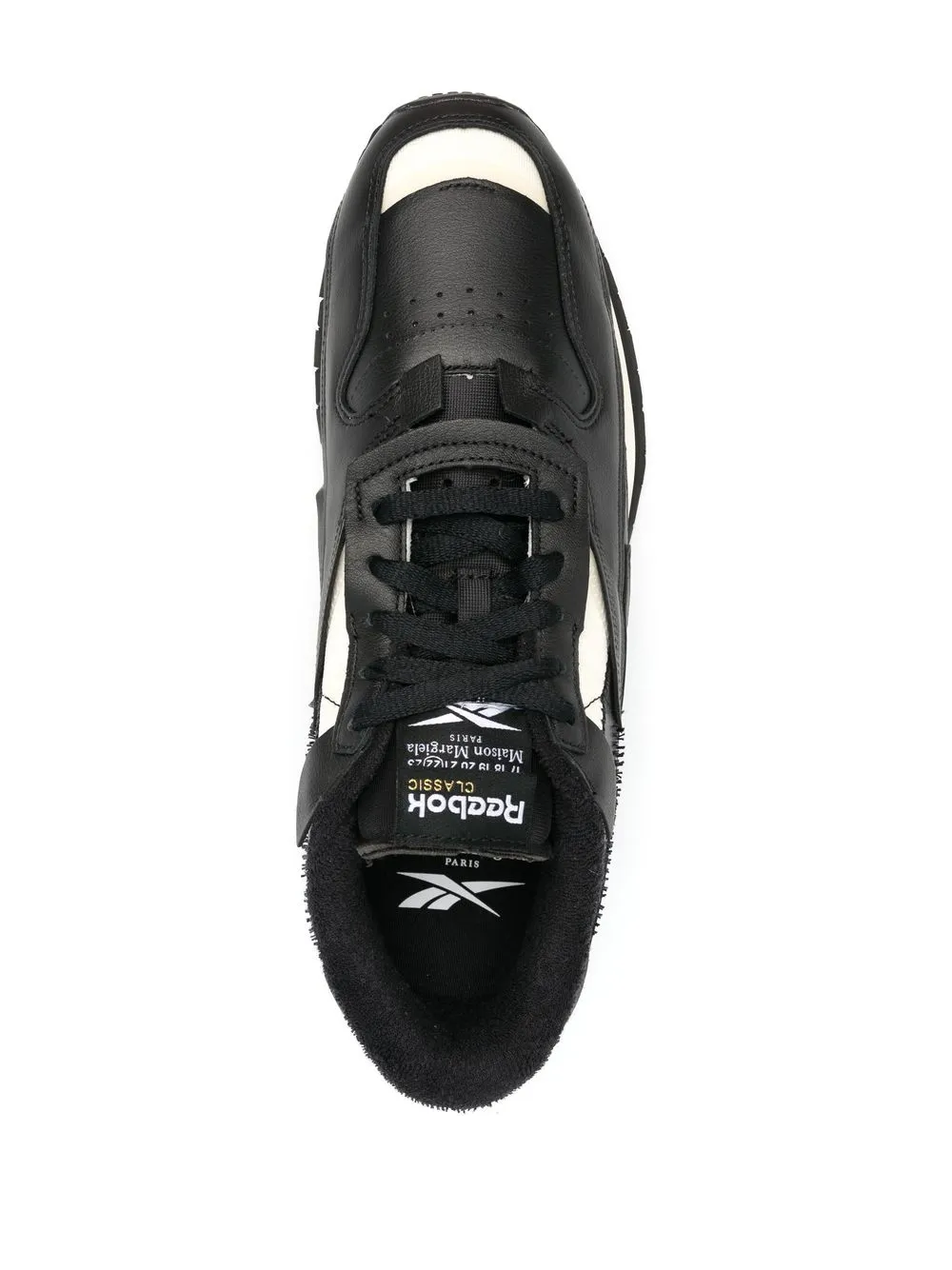 Noir/blanc, cuir de veau, design à empiècements, bout rond, fermeture à lacer sur le devant, semelle plate en caoutchouc.