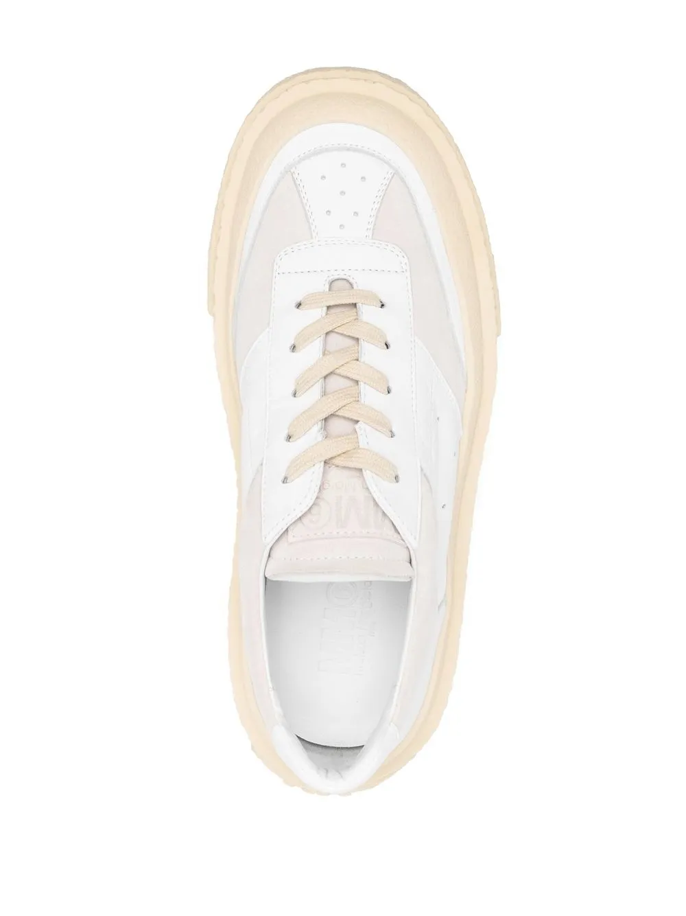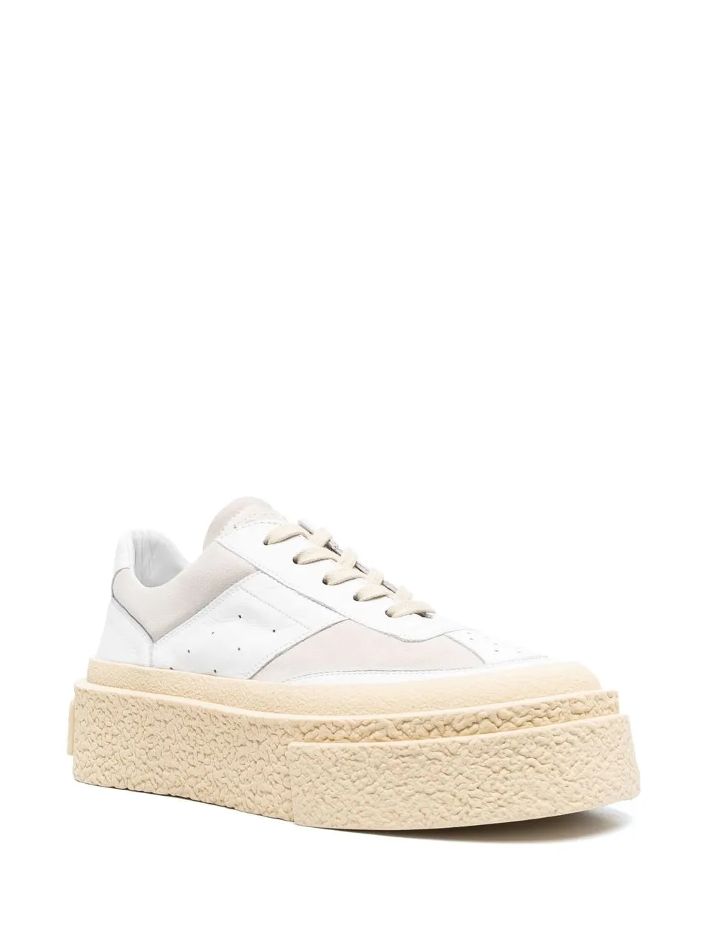 Blanc Cloud, cuir de veau, finitions en daim, détails de perforations, languette à patch logo, fermeture à lacer sur le devant, semelle intérieure à logo, bout rond, semelle à plateforme.
