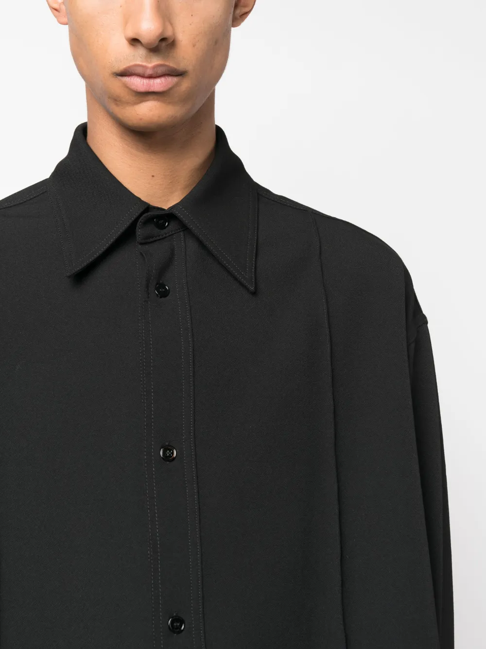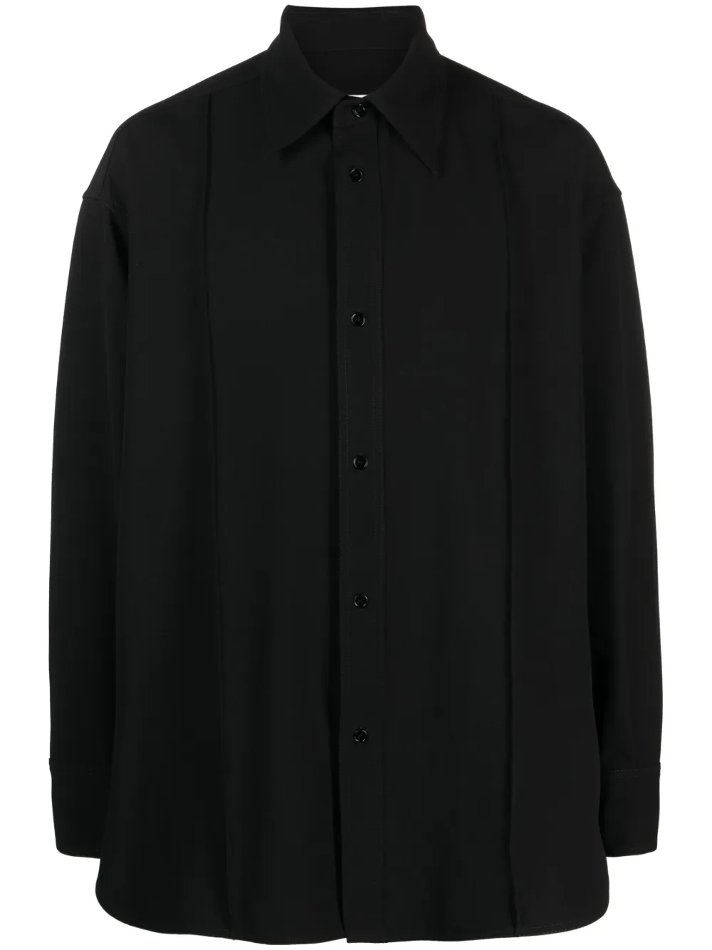 inverted-pleat long-sleeved shirt from MM6 Maison Margiela featuring inverted pleat, contrast stitching, buttoned-cuff sleeves, black, classic collar, front button fastening, long sleeves and straight hem.